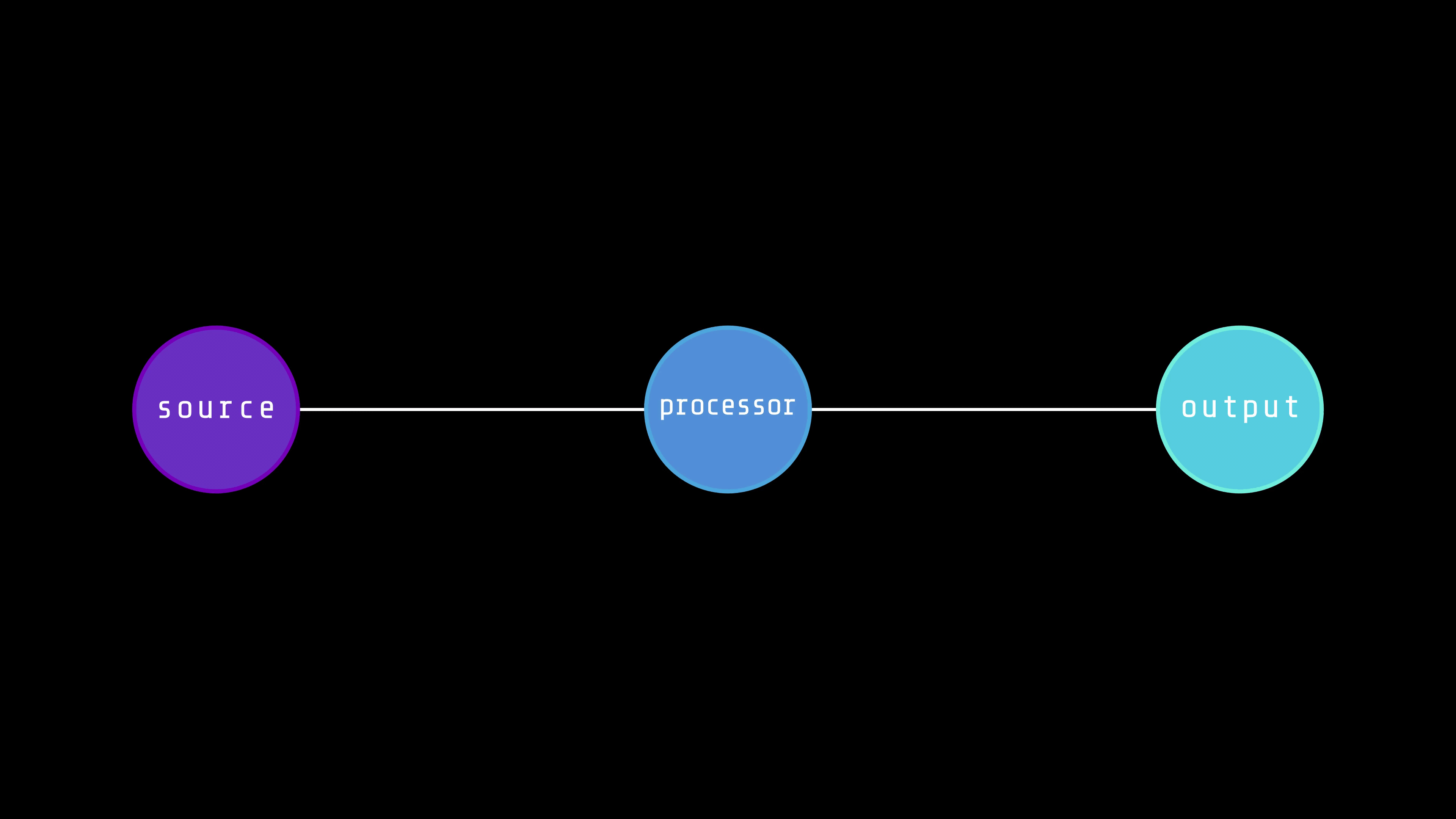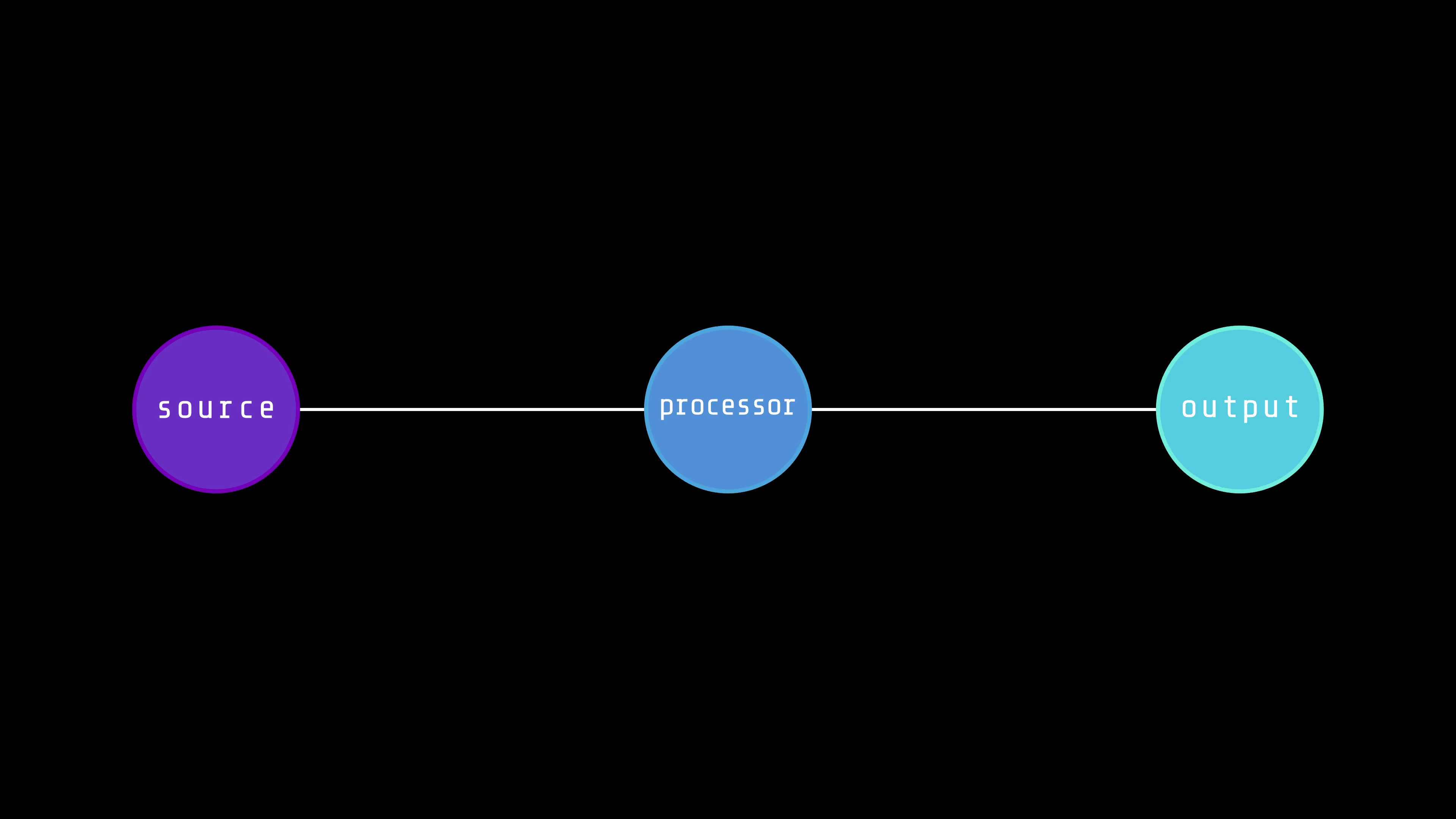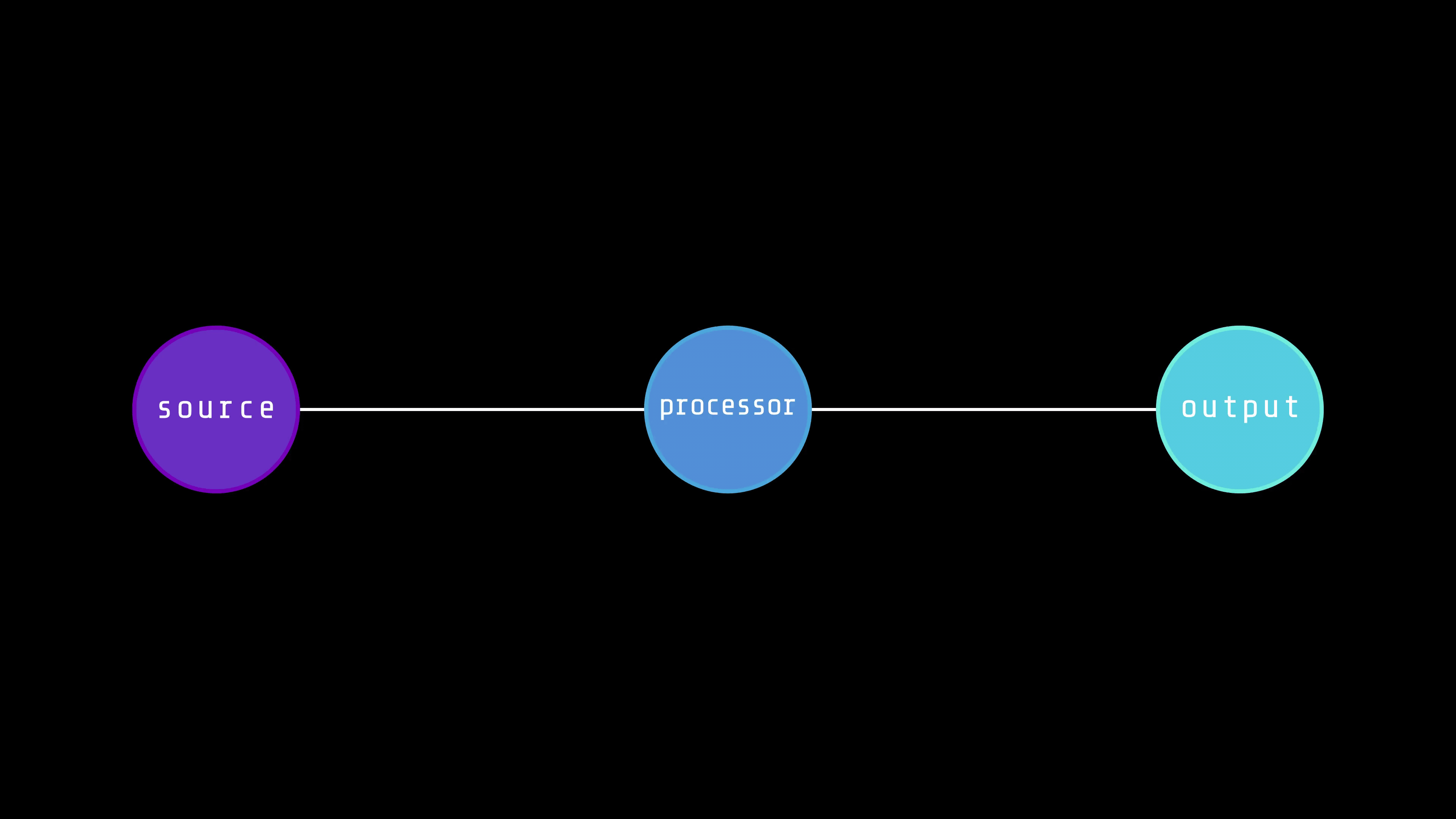 In the general case, we have a processor function which is in the middle of source and destinations, which processes the data packets (packet here is an abstraction for simplicity) one by one.